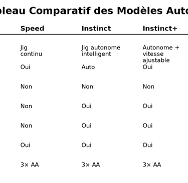 📊 Voici un tableau clair et facile à comprendre pour choisir le modèle qui vous convient